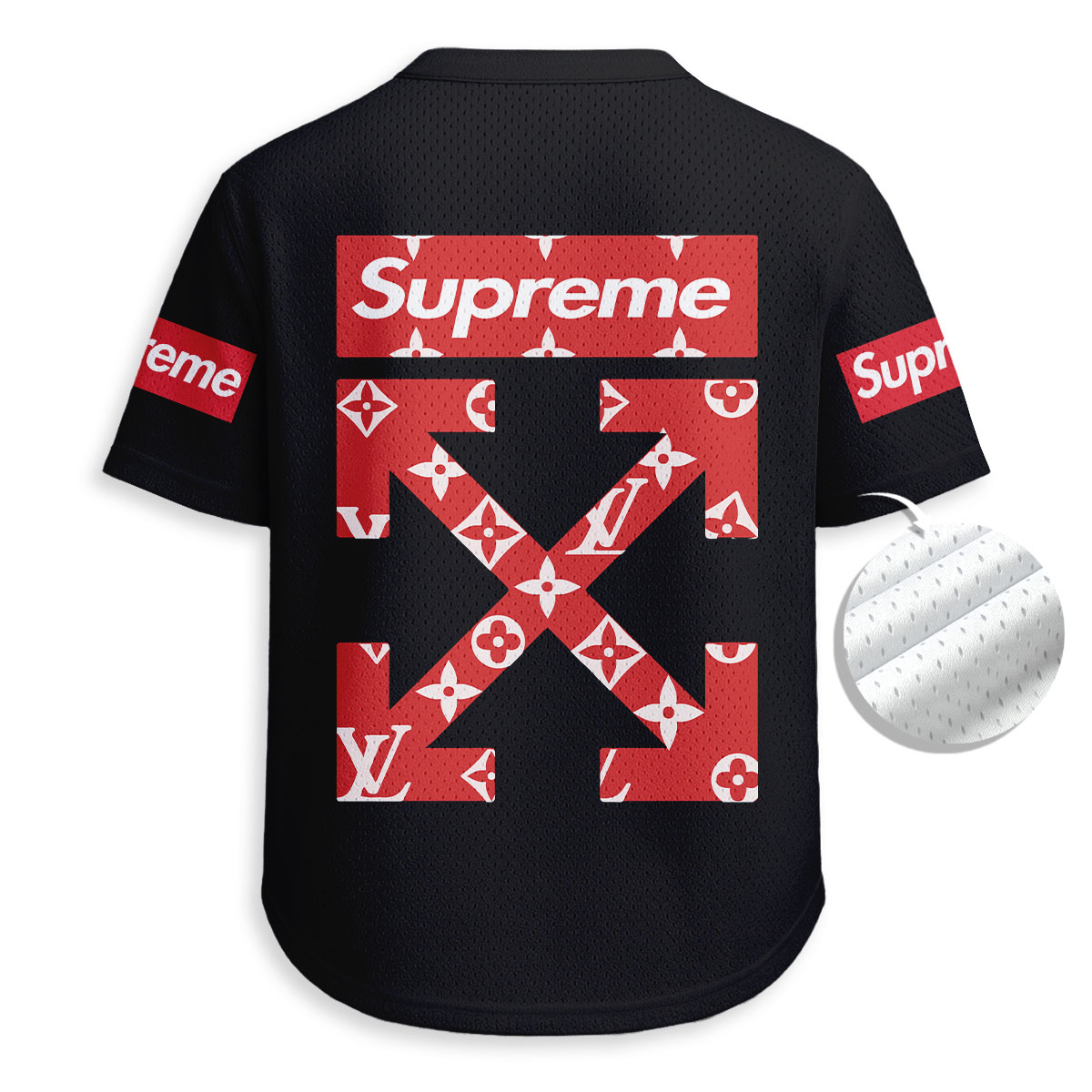 Off White x Supreme x Kaws - Unisex V-Neck Mesh Tee - Relaxed Fit