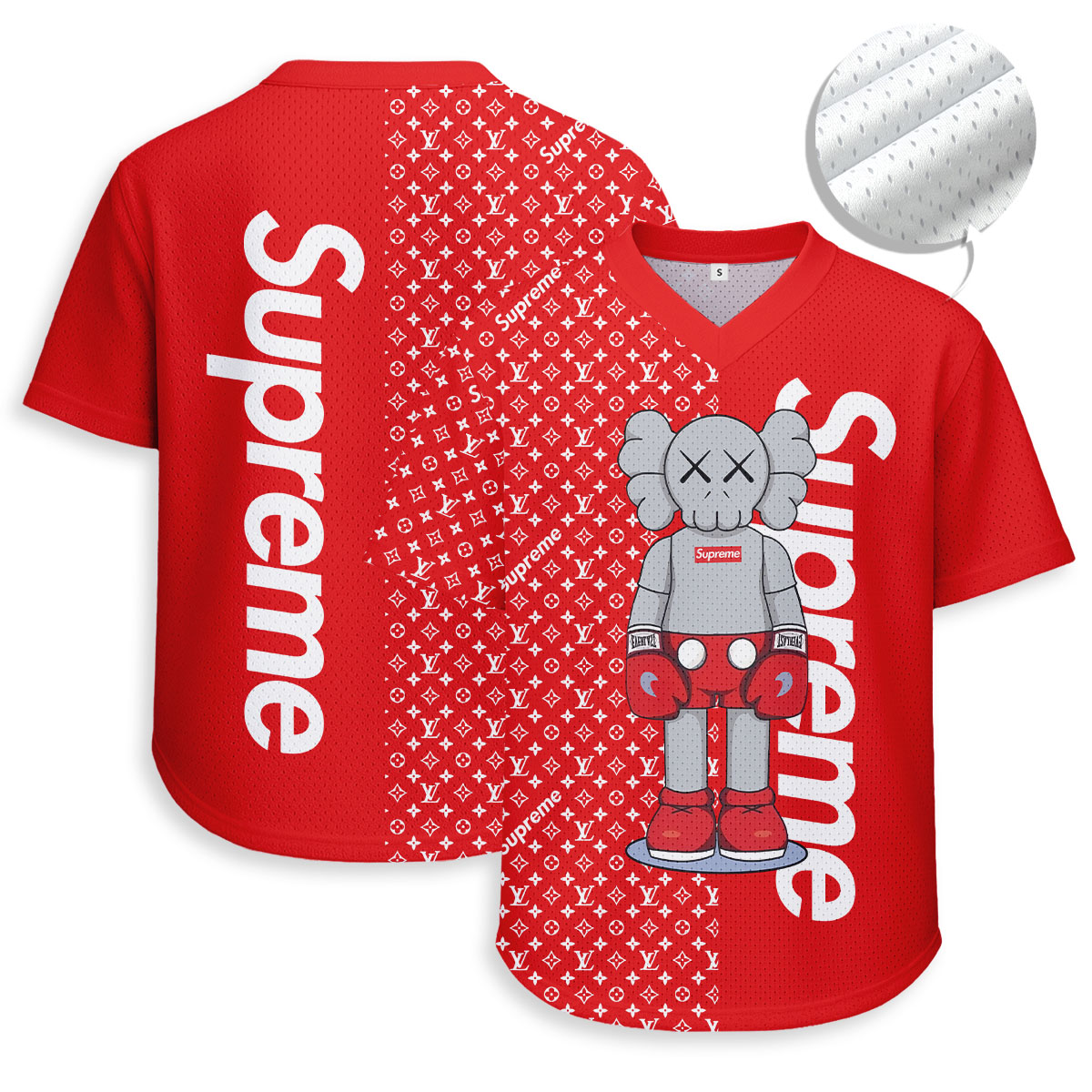 LOUIS VUITTON, SUPREME, Kaws - Unisex V-Neck Mesh Tee - Relaxed Fit