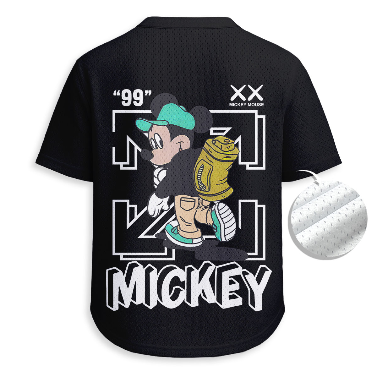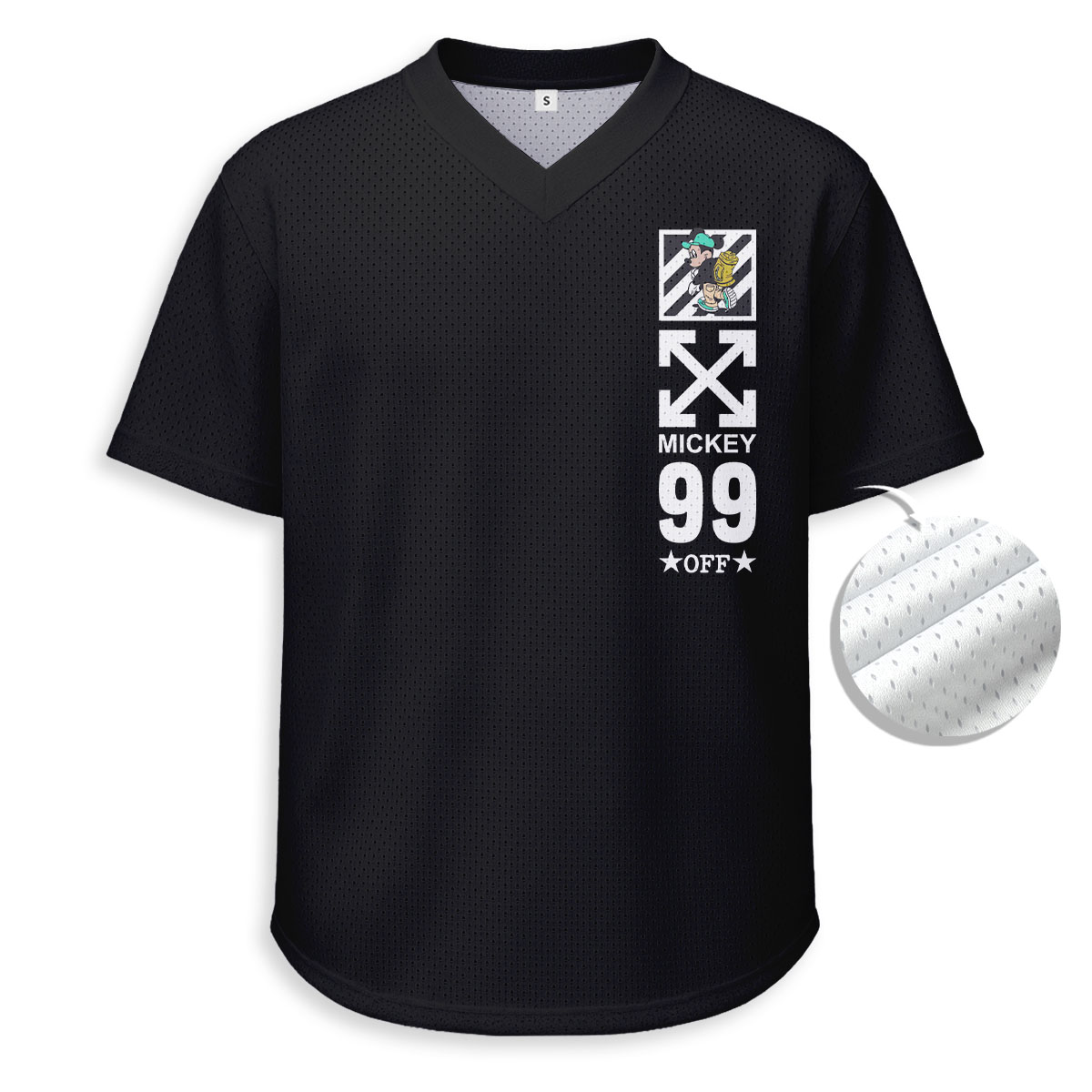 OFF WHITE, Mickey Mouse - Unisex V-Neck Mesh Tee - Relaxed Fit